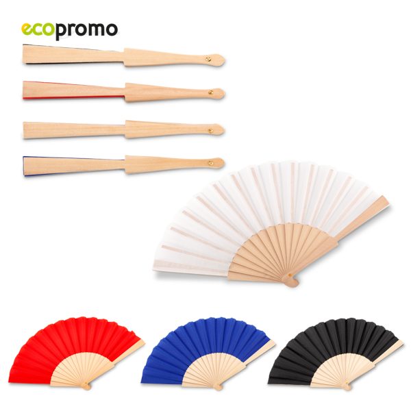 Abanico con cuerpo y 14 brazos en madera. Tela en poliéster.