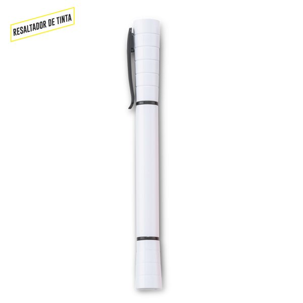 Bolígrafo plástico con resaltador de tinta.