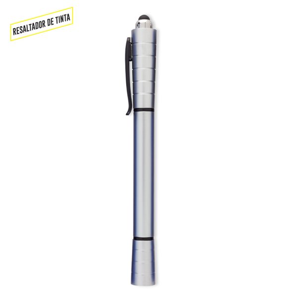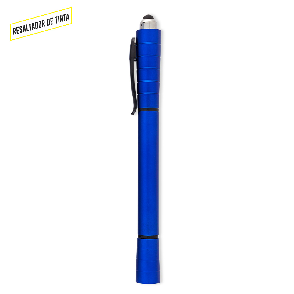 Bolígrafo plástico con stylus y resaltador de tinta.