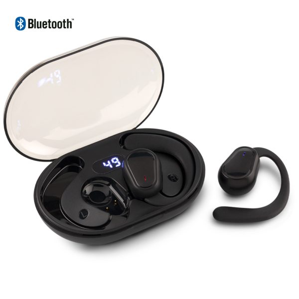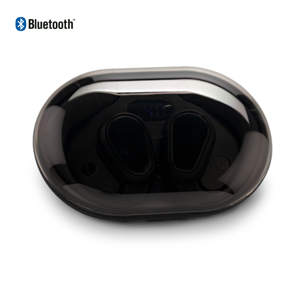 Audífonos Bluetooth plásticos de conducción ósea, que utiliza tecnología de conducción de las vibraciones del sonido, sin invasión intraauricular. Con estuche portátil y display LCD de recarga de 500mAH que muestra el nivel de carga. Reducción de ruido 50dB. Tiempo de carga del estuche: 2 horas, tiempo de carga de los audífonos 1.5 horas. Tiempo de trabajo de estuche hasta 12 horas, y de los audífonos hasta 4 horas seguidas. Versión de Bluetooth: V5.2+EDR. Línea de transmisión: >10 M. Incluye cable Tipo C para carga. Empaque caja individual.