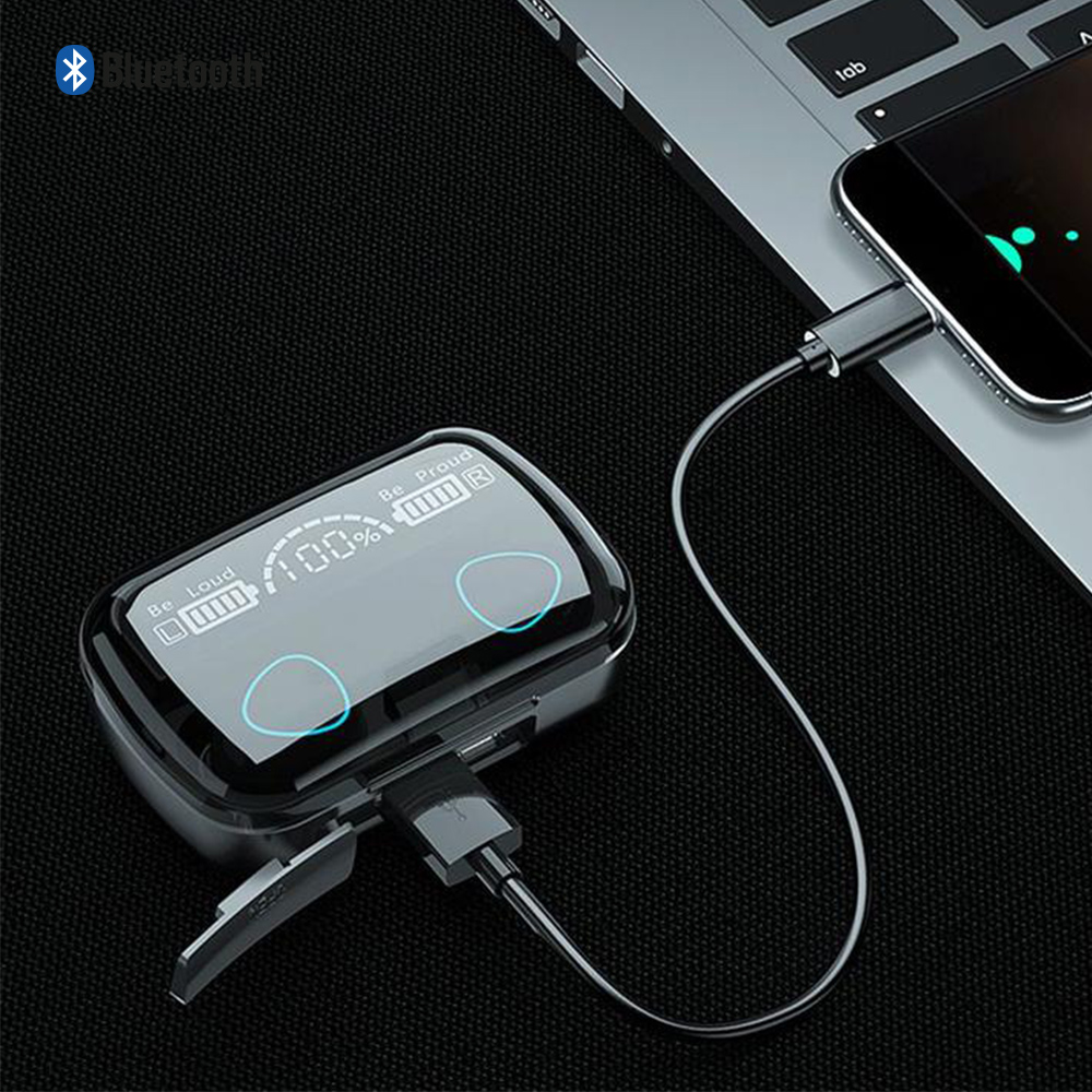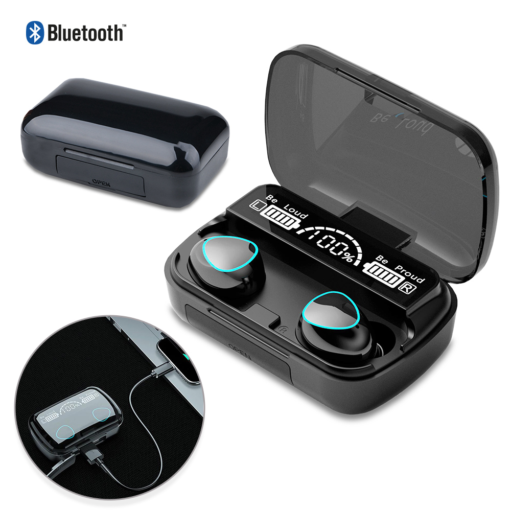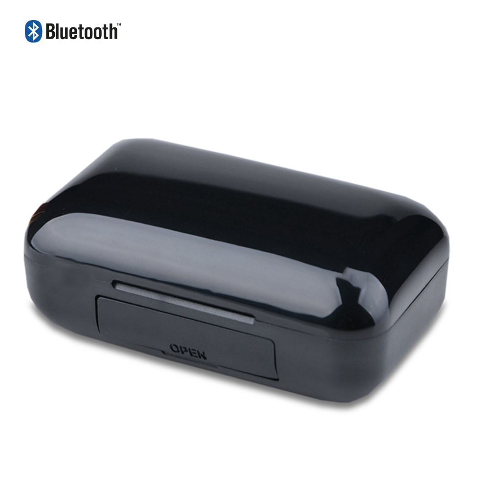 Audífonos plásticos Bluetooth. Con estuche portátil y display LCD de recarga de 2.000mAh que muestra el nivel de carga.