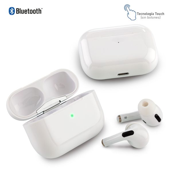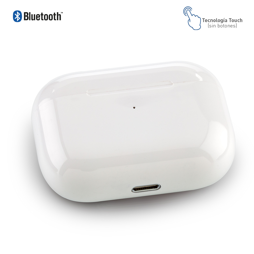 Diseño sin cables, tecnología touch (sin botones), es sensible a la presión en la parte superior de cada audífono para las funciones. Mini batería incorporada de 35mAh en cada uno. La conexión se realiza prendiendo el estuche, abriéndolo y antes de extraer los audífonos. El estuche funciona como cargador, con batería incorporada de 200mAh. Rango Bluetooth de 8 a 10m sin interferencia. Funciona como manos libres. Empaque caja individual.
