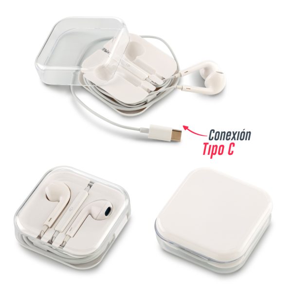Audífonos plásticos en estuche con organizador de cable, funcionan como manos libres (control de volumen). Estuche empaque individual.