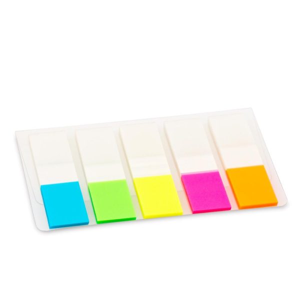 Juego de 5 stickies de colores plásticos, 25 unidades por color.