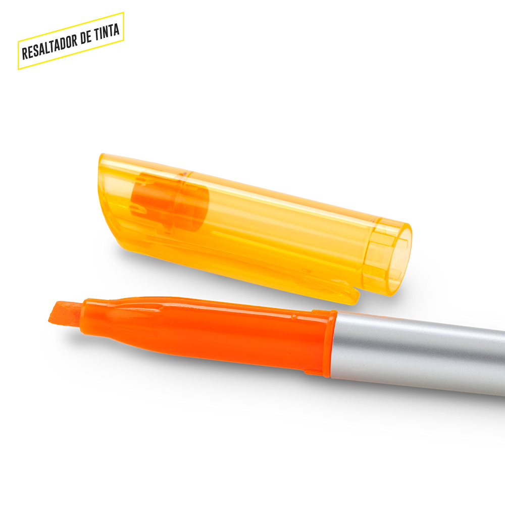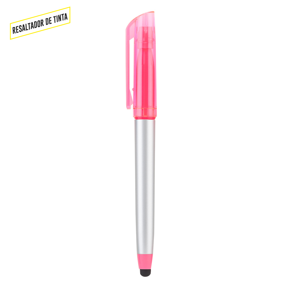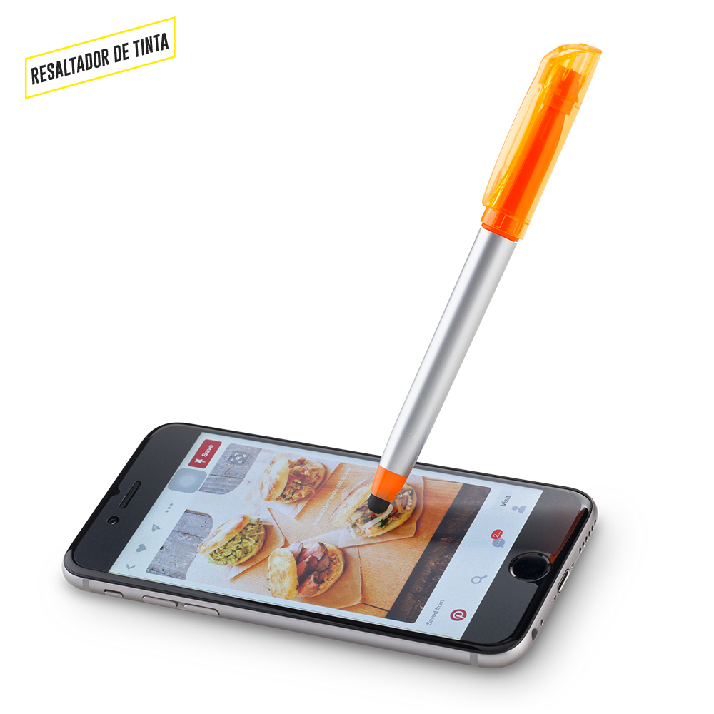 Bolígrafo plástico con stylus y resaltador de tinta.