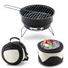 Asador BBQ metálico con parrilla, con lonchera nevera en poliéster, interior en PVC. Empaque caja blanca Individual.