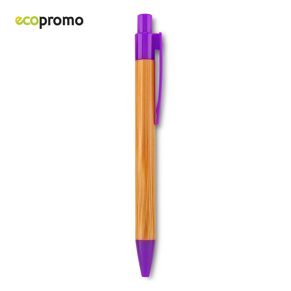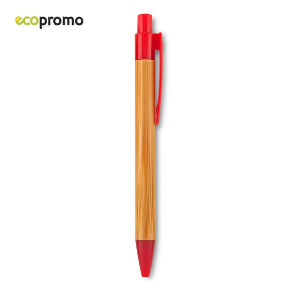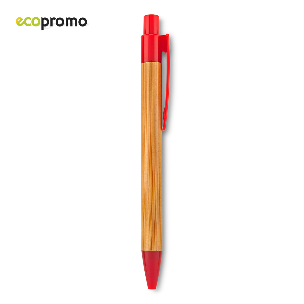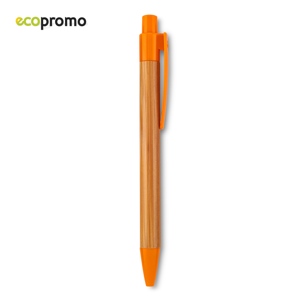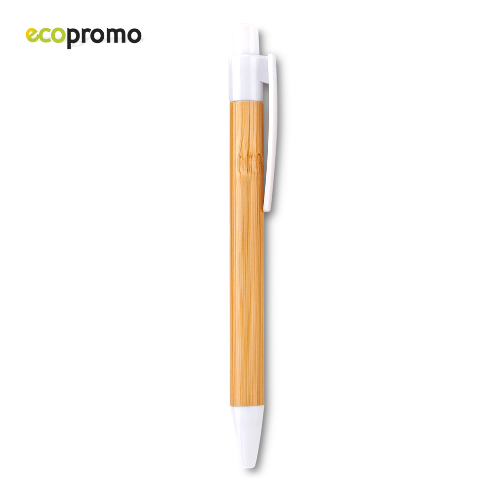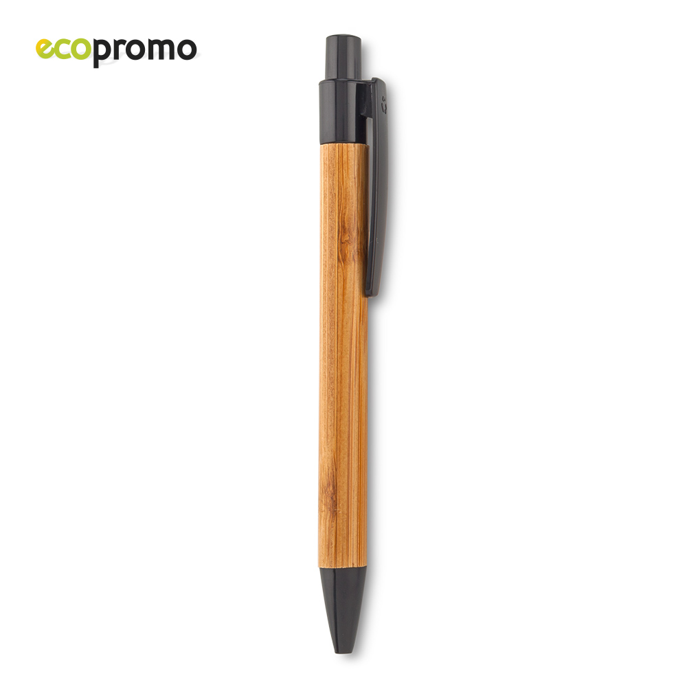 Bolígrafo con partes plásticas y barril en bambú. Mecanismo push.