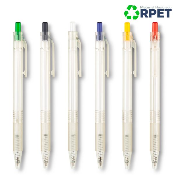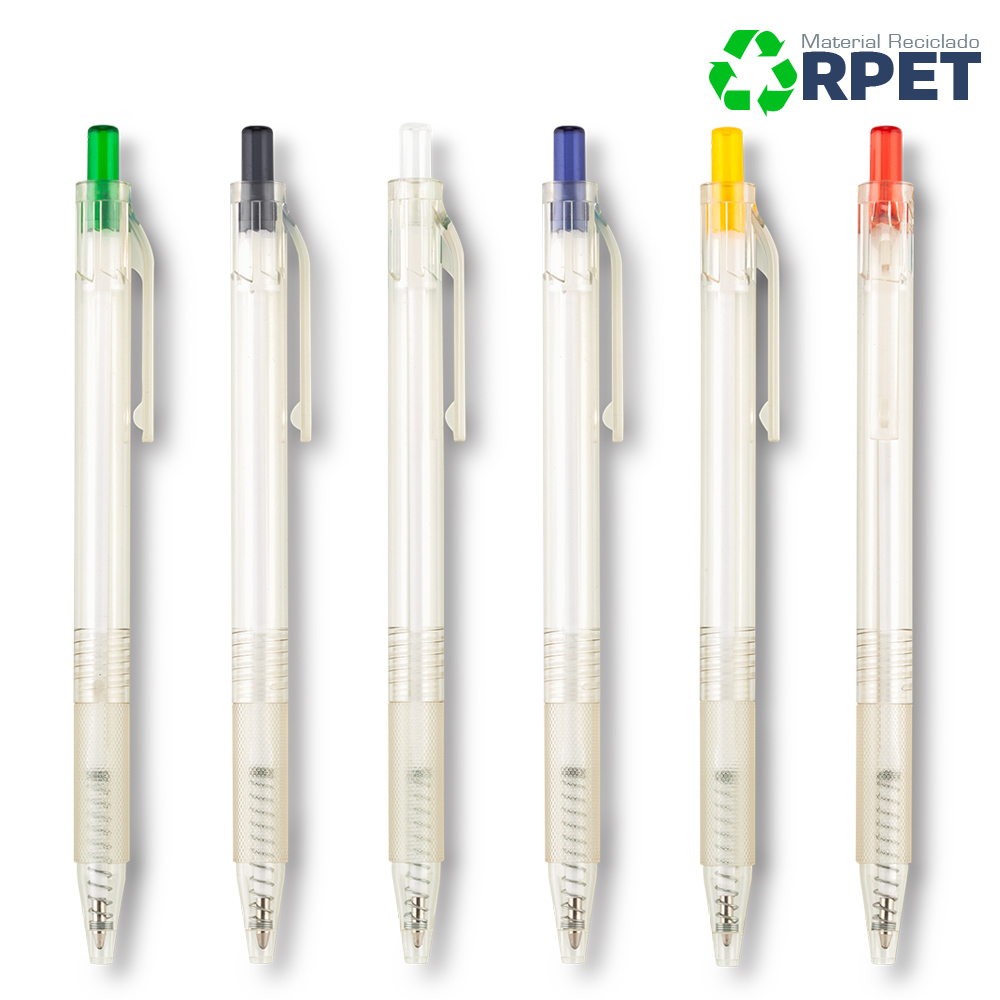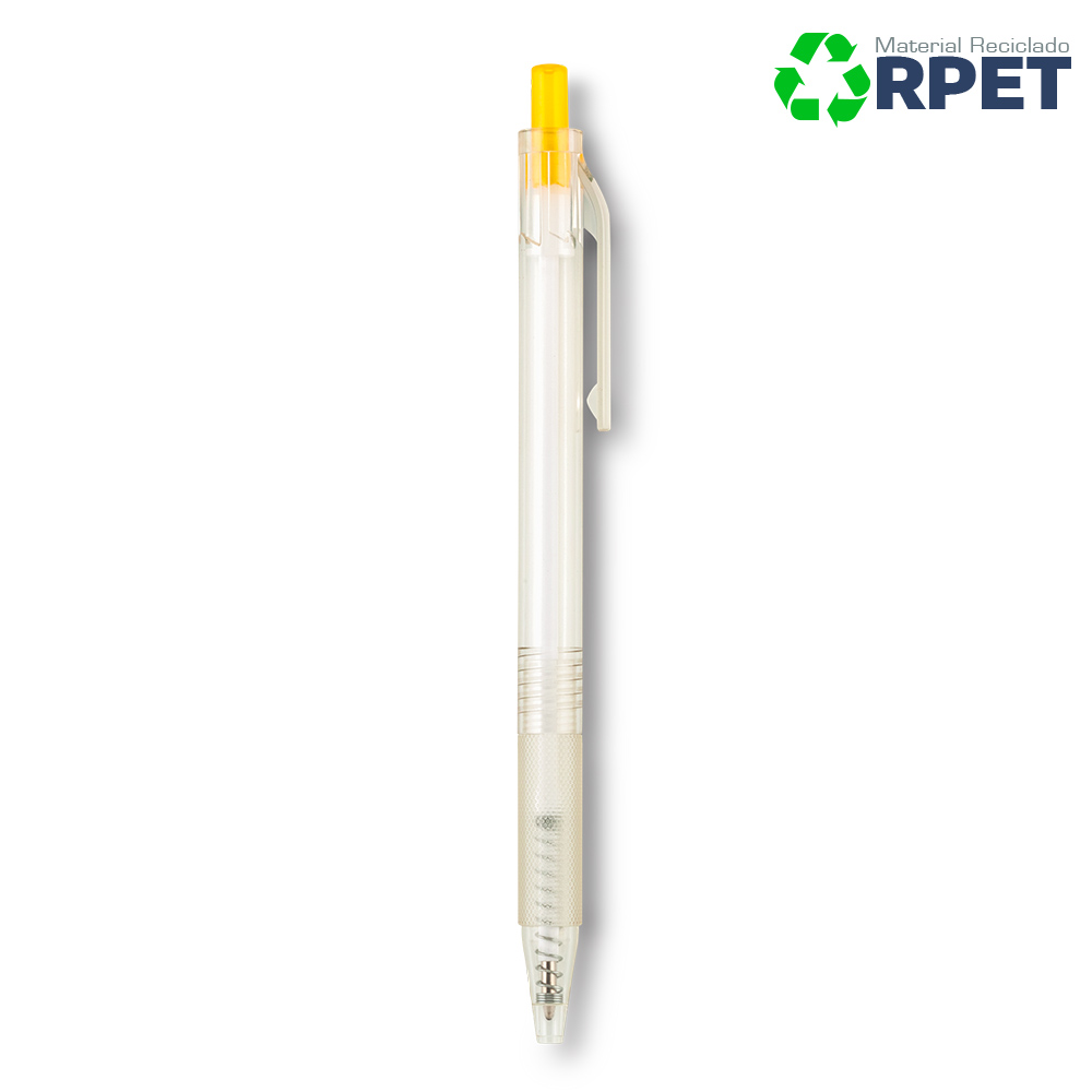 Bolígrafo plástico. Mecanismo Push. Elaborado con plástico reciclado de botellas.
