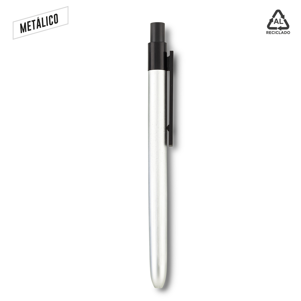 Bolígrafo en aluminio inoxidable reciclado. Mecanismo push.