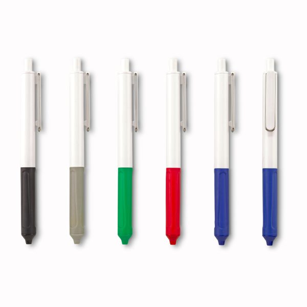 Bolígrafo plástico con grip en silicona. Mecanismo push.