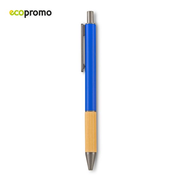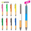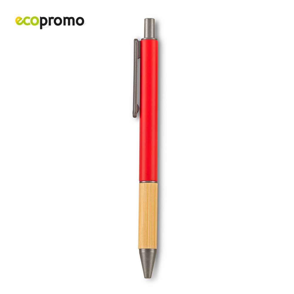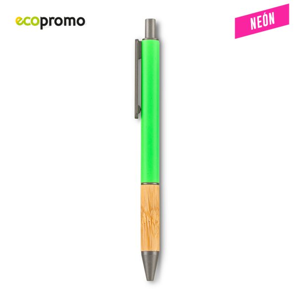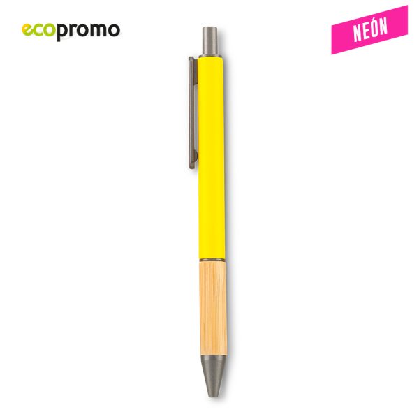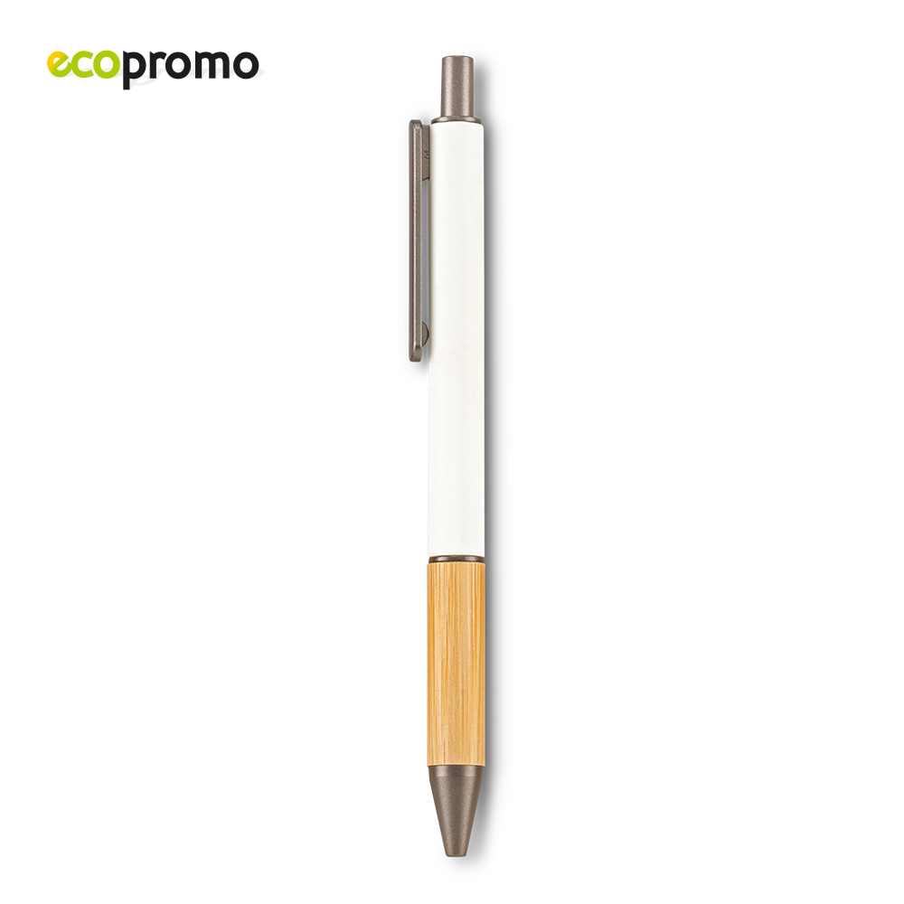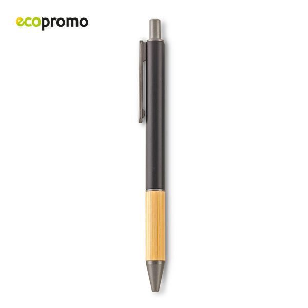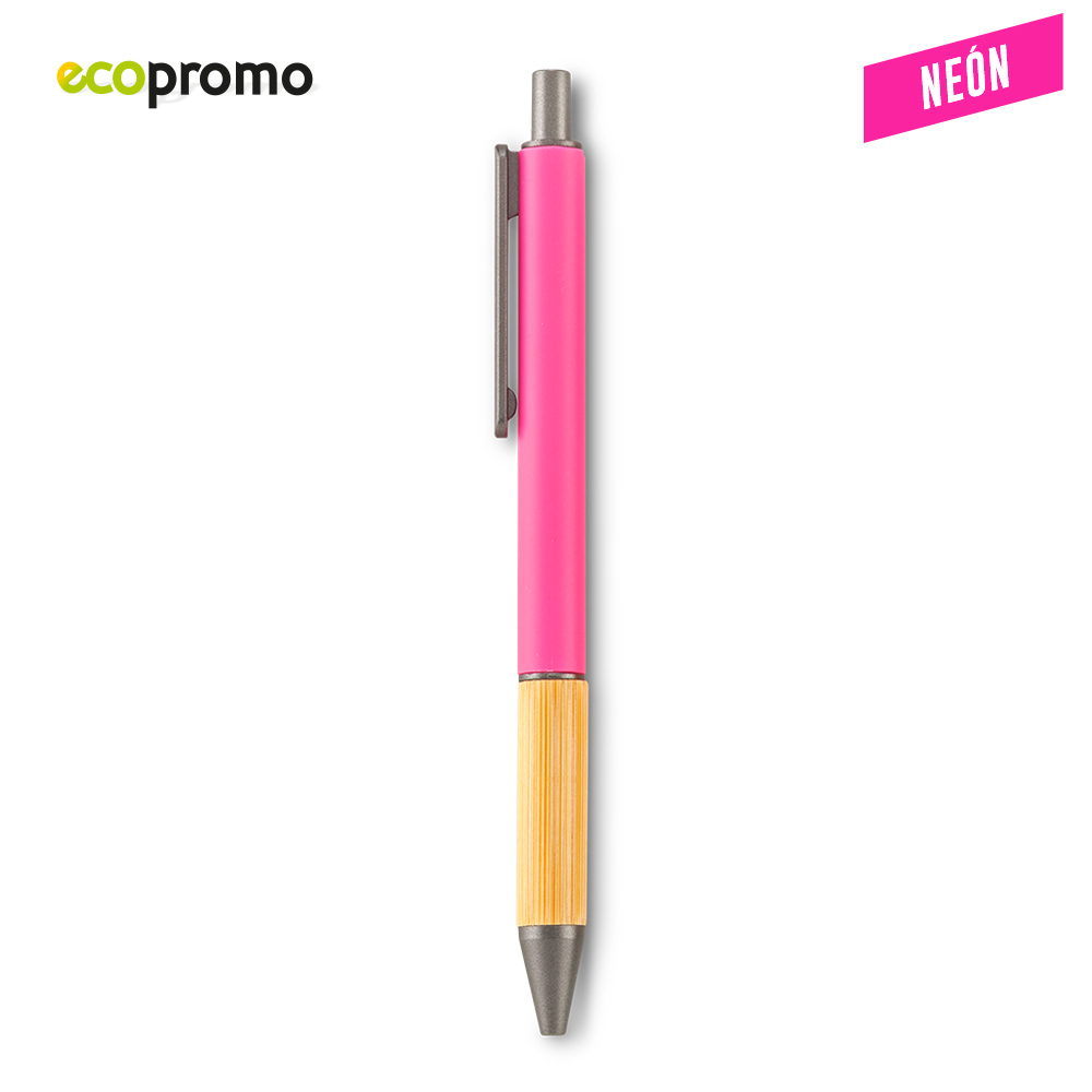 Bolígrafo plástico con grip de bambú. Mecanismo Push.