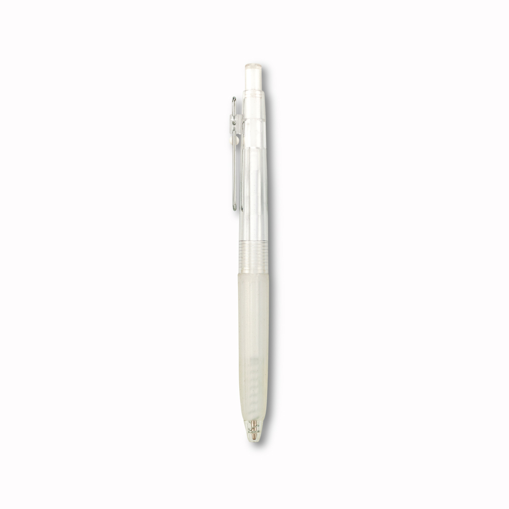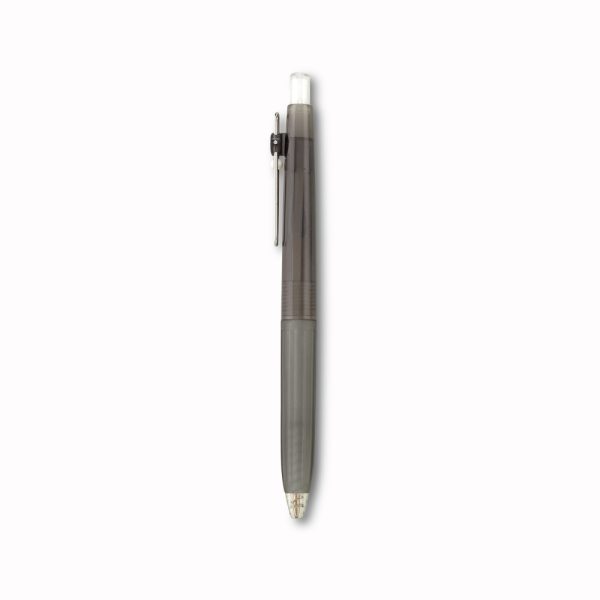 Bolígrafo plástico con grip en silicona y clip metálico. Mecanismo push.