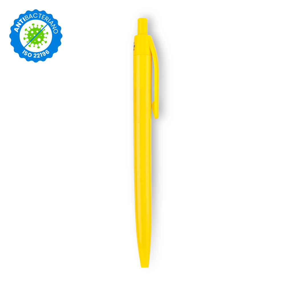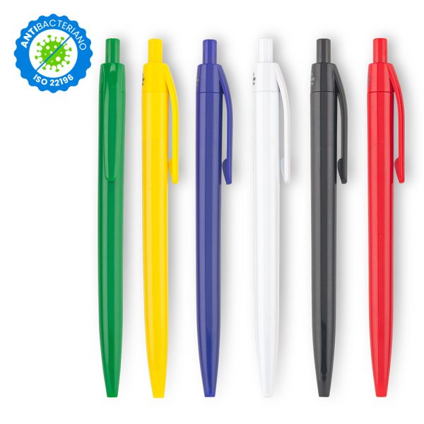 Bolígrafo plástico fabricado con un aditivo antibacteriano que inhibe y previene el crecimiento bacteriano sobre el cuerpo del bolígrafo gracias a la tecnología nano silver, un tratamiento especial realizado con iones de plata.