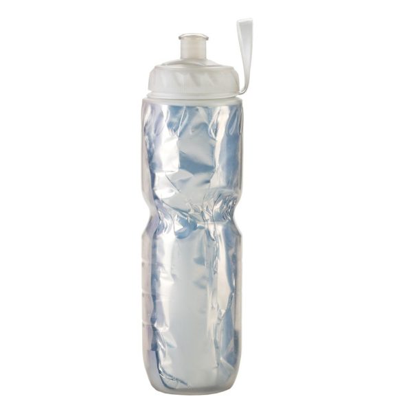Botilito en plástico PE de doble pared, papel aluminizado para mantener bebidas frías, interior metalizado, tapa rosca con agarradera plástica.