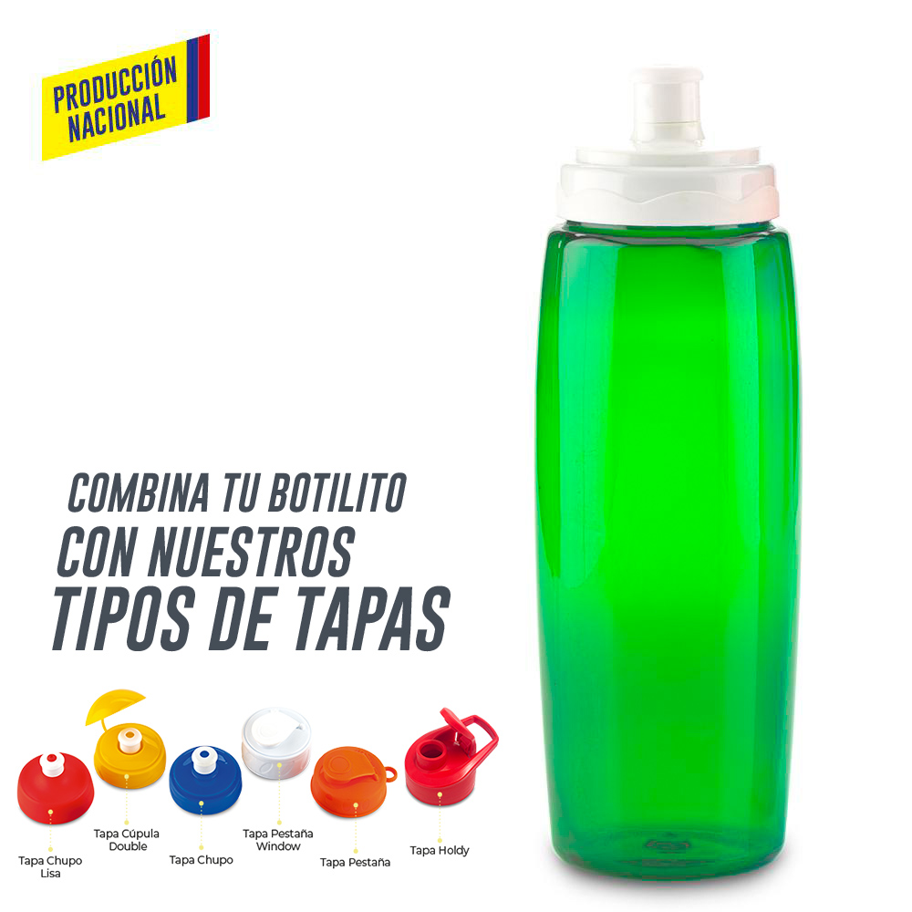 Botilito en PET: Libre de BPA, atóxico 100%, reciclable y reutilizable. Apto para uso en bebidas frías únicamente. No lavar con agua caliente.