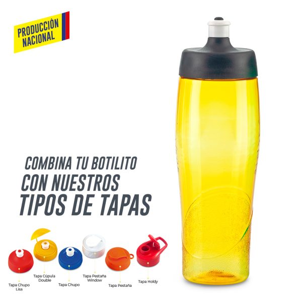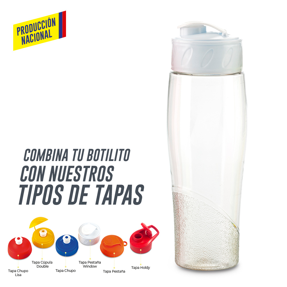 Botilito en PET: Libre de BPA, atóxico 100%, reciclable y reutilizable. Apto para uso en bebidas frías únicamente. No lavar con agua caliente.