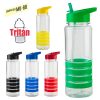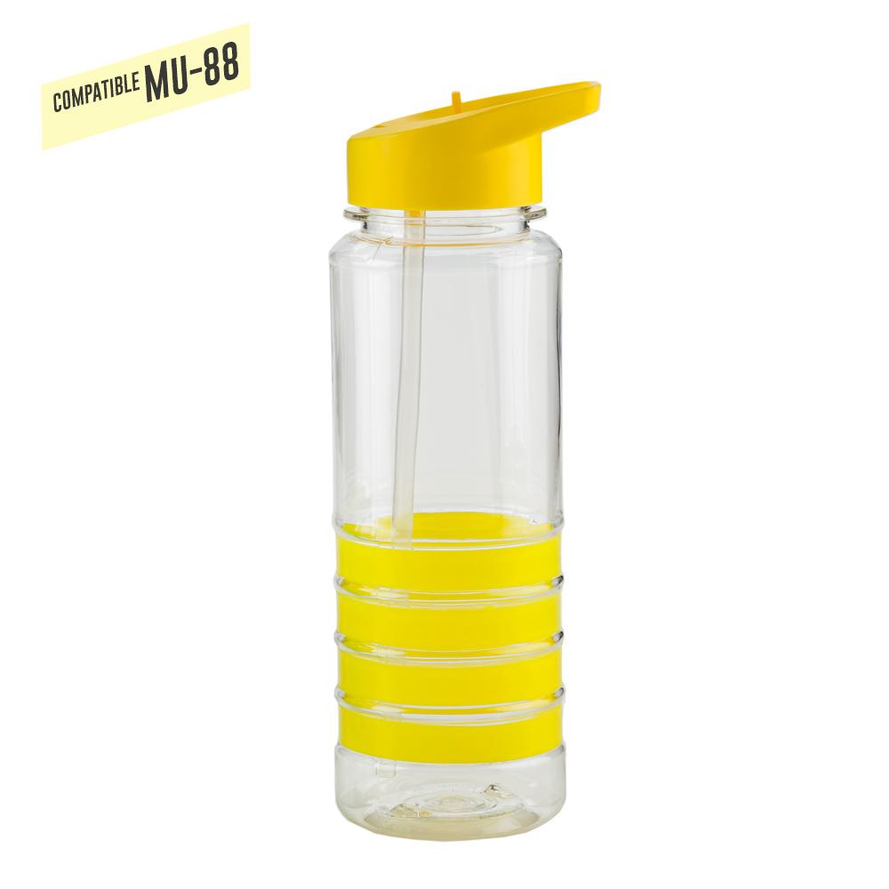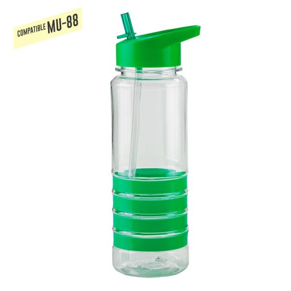 Termo en tritán con tapa de rosca, pitillo removible y bandas de silicona.  Libre de BPA (bisphenol-A).