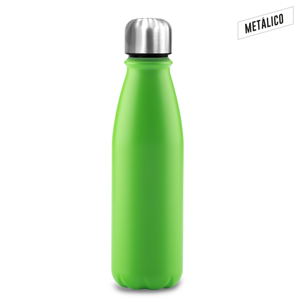 Metálico, en Aluminio. Con tapa rosca. No apto para bebidas calientes.