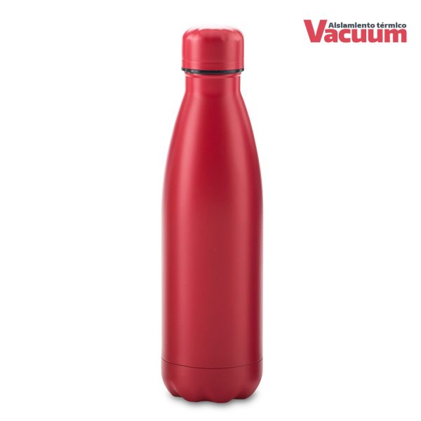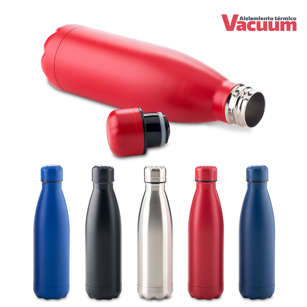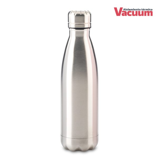 Doble pared en acero Inoxidable, con aislamiento térmico que mantiene la bebida fría entre 8-10h aprox o caliente 3-4h aprox (puede variar dependiendo condiciones climáticas). Tapa rosca con interior plástico.