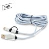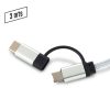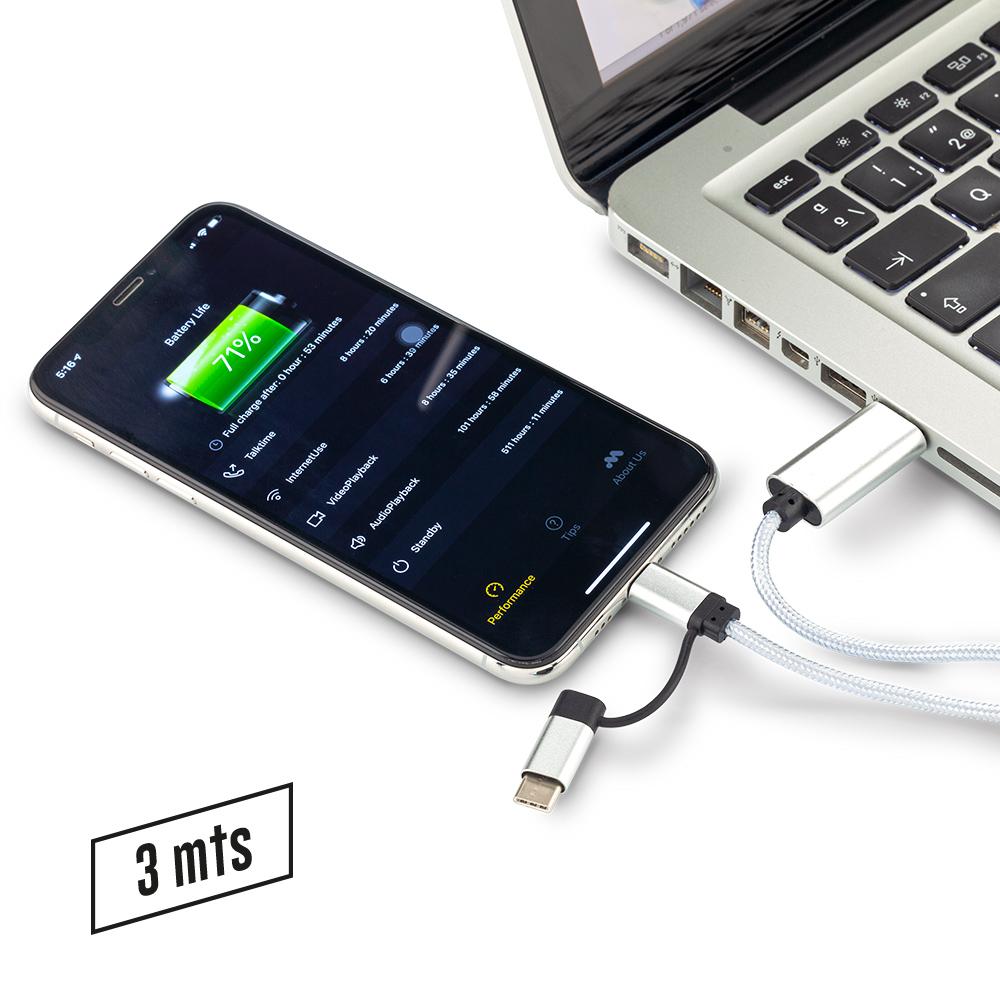 Cable multicargador de tres metros. Entrada IPhone-Micro (2 en 1) y Tipo C.