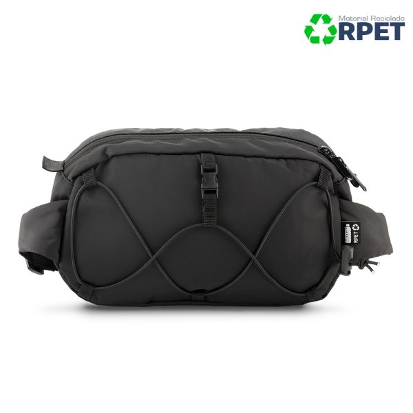 Canguro en poliéster reciclado RPET. Bolsillo posterior con cremallera. Con protección RFID.
