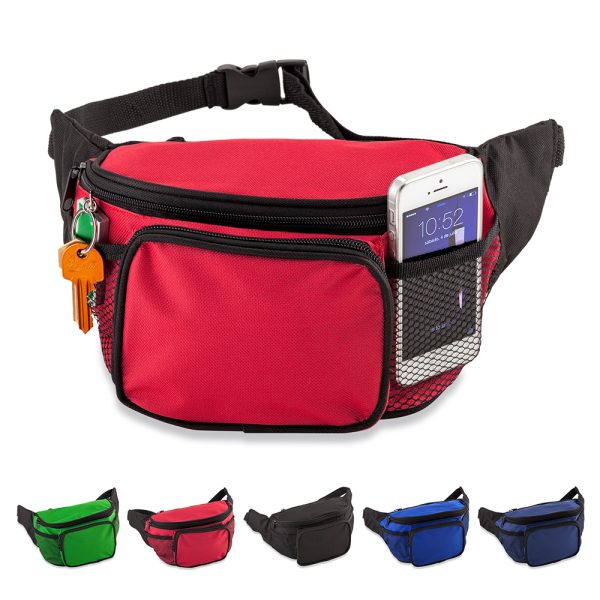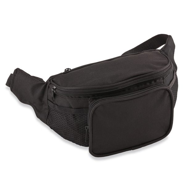 Tres compartimentos con cremalleras, reata y dos bolsillos laterales.