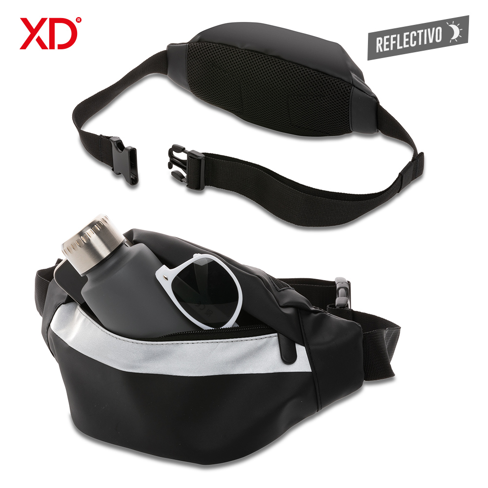 Elaborado en poliéster y poliuretano, resistente al agua (no sumergible). Con banda reflectiva.