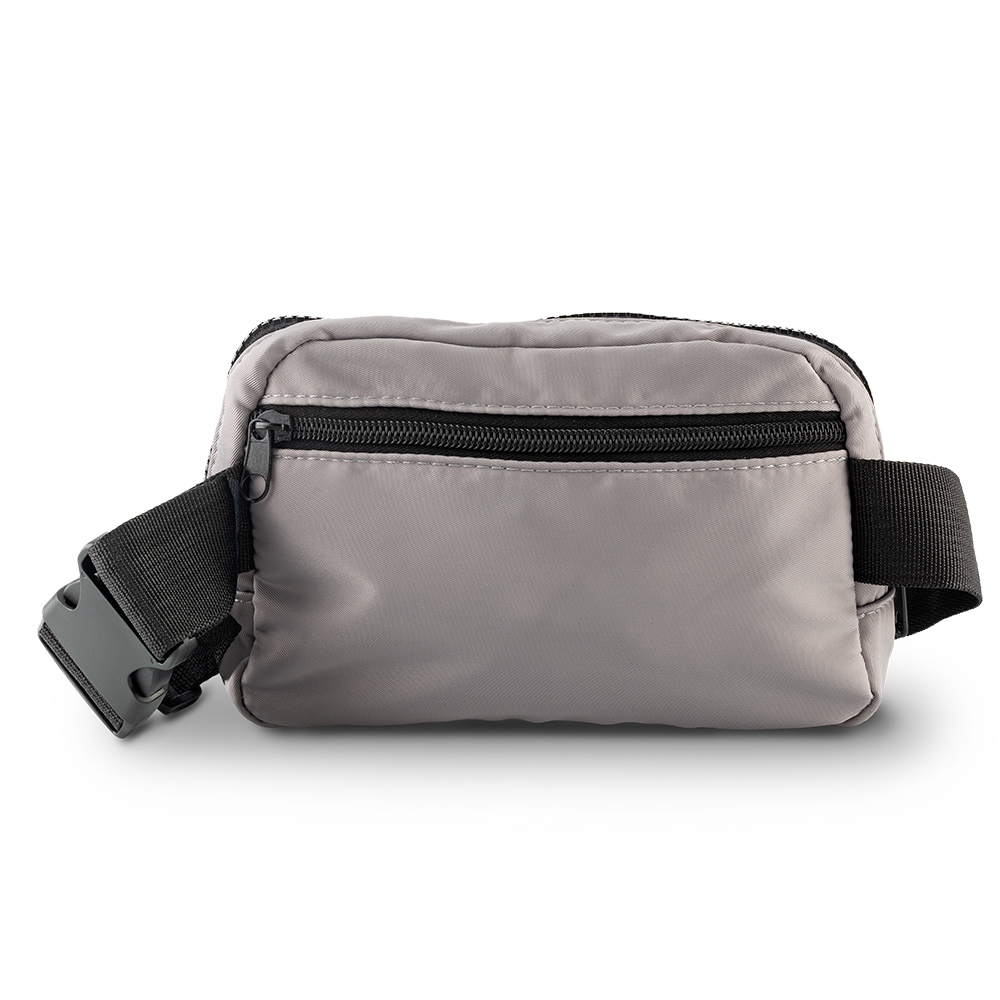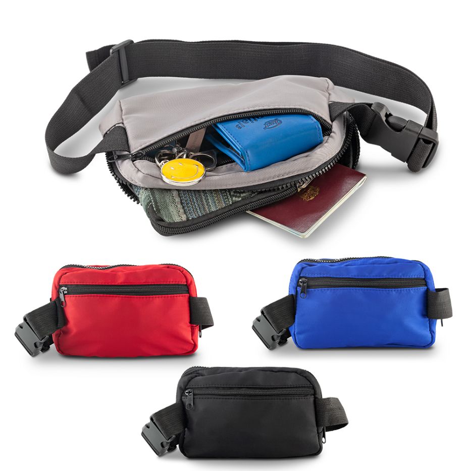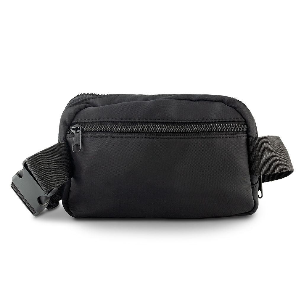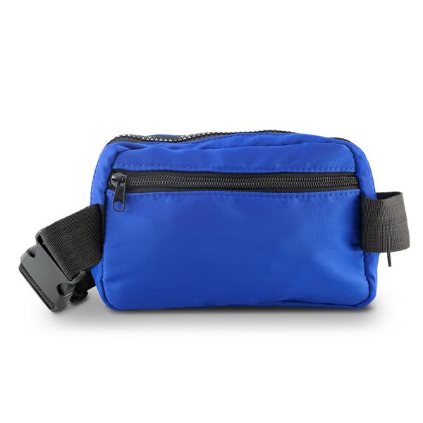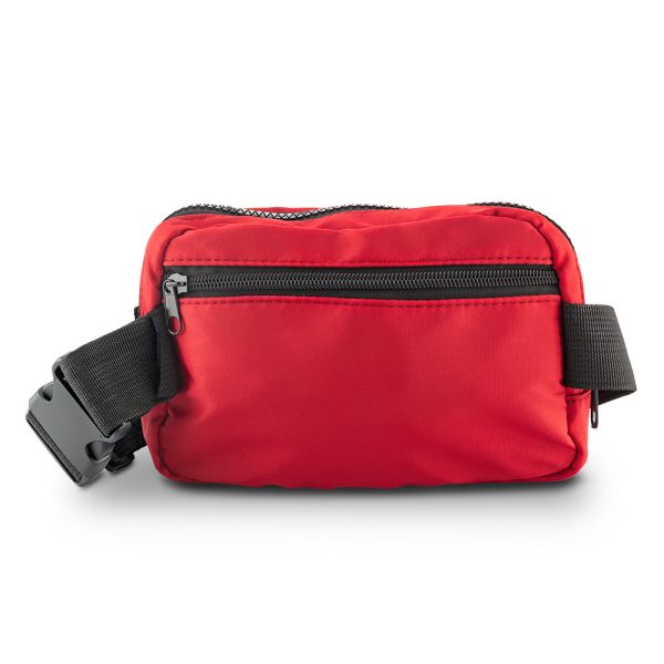 Canguro en poliéster. Con bolsillo posterior con cremallera.