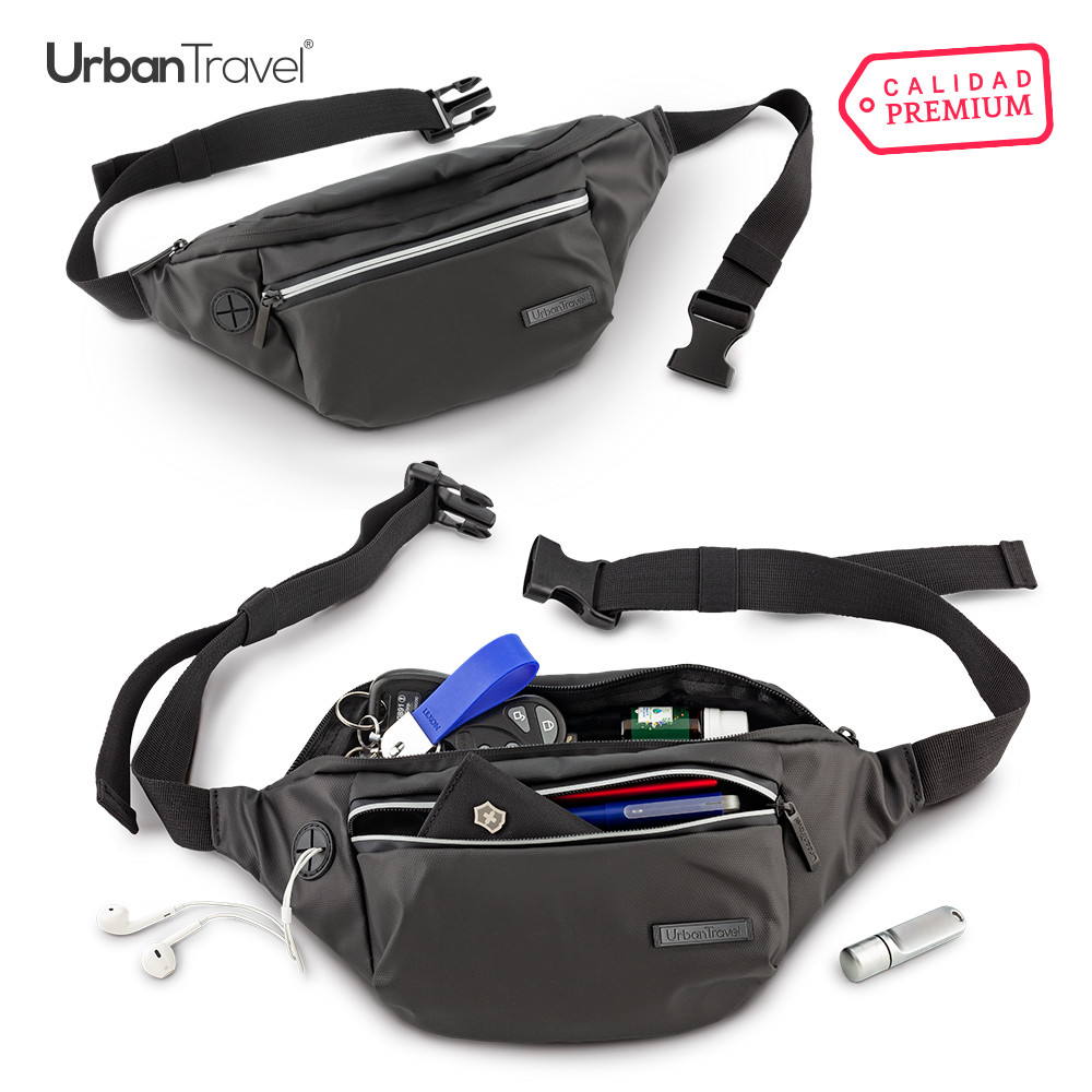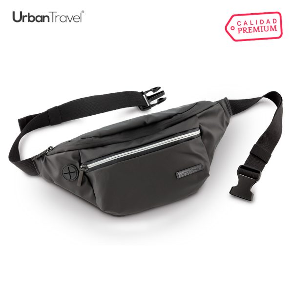 Canguro en poliéster, dos bolsillos y aplique reflectivo.