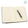 Cargador inalámbrico para móviles de 10W con libreta en material reciclado RPET. 80 hojas de papel crema de 70g con rayas y bolígrafo. Compatible con dispositivos equipados con tecnología de carga inalámbrica. Empaque caja individual.