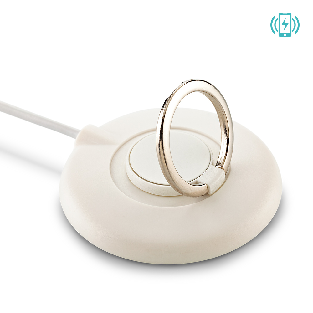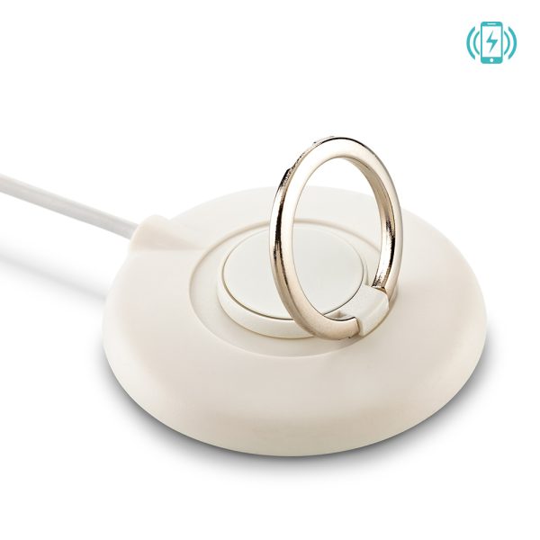 Cargador inalámbrico magnético de 15W en plástico. Con soporte en metal. Empaque caja individual.