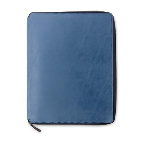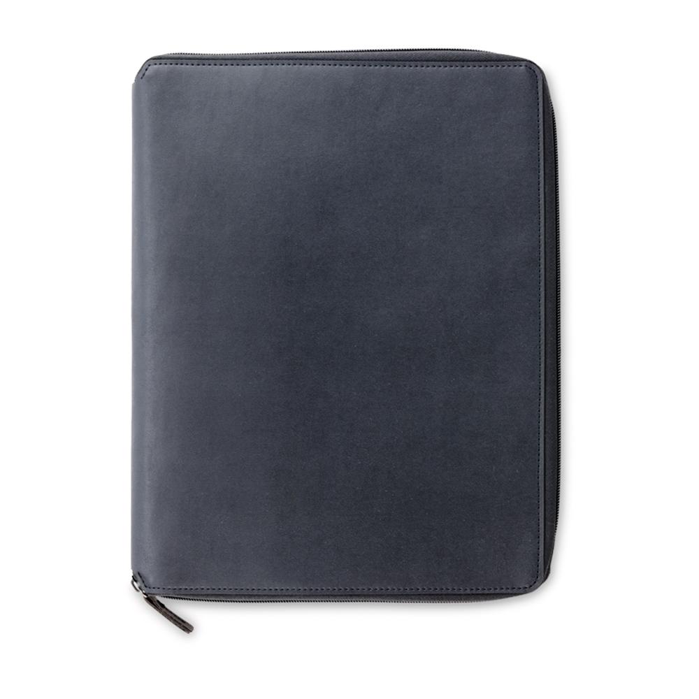 Folder en poliuretano con cremallera. Incluye bloc de notas de 20 hojas.