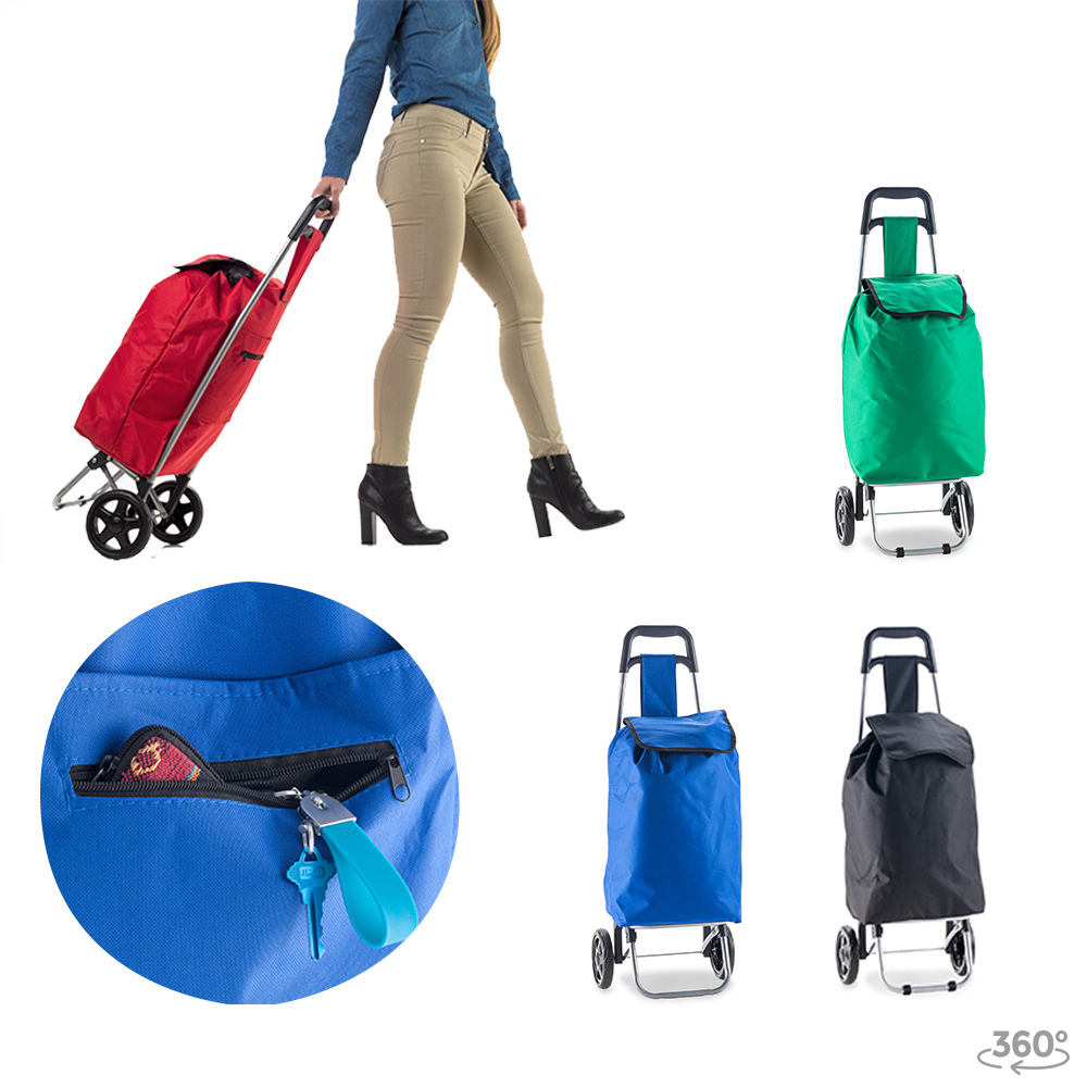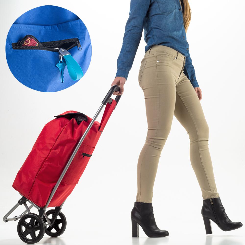 Trolley para mercado con bolsa en poliéster y bolsillo posterior. Resistencia 15kg.