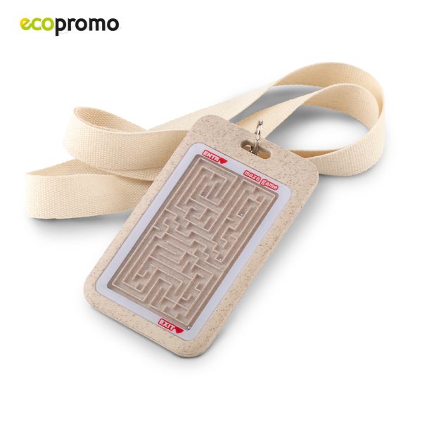 Cinta porta carnet con funda plástica en fibra de trigo para tarjeta de identificación y juego de laberinto.