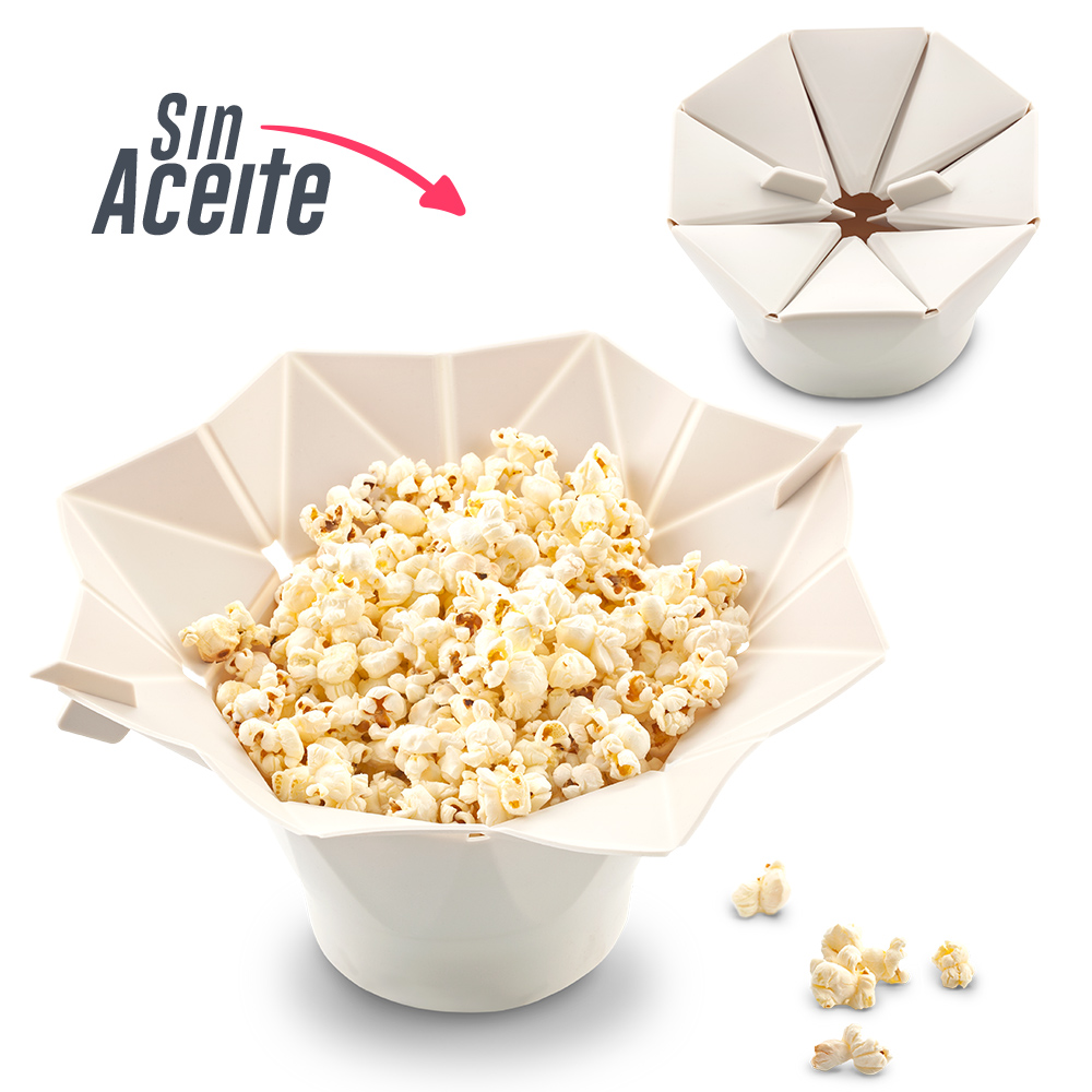 Crispetera en silicona (apta para alimentos) para uso en microondas.