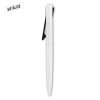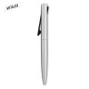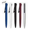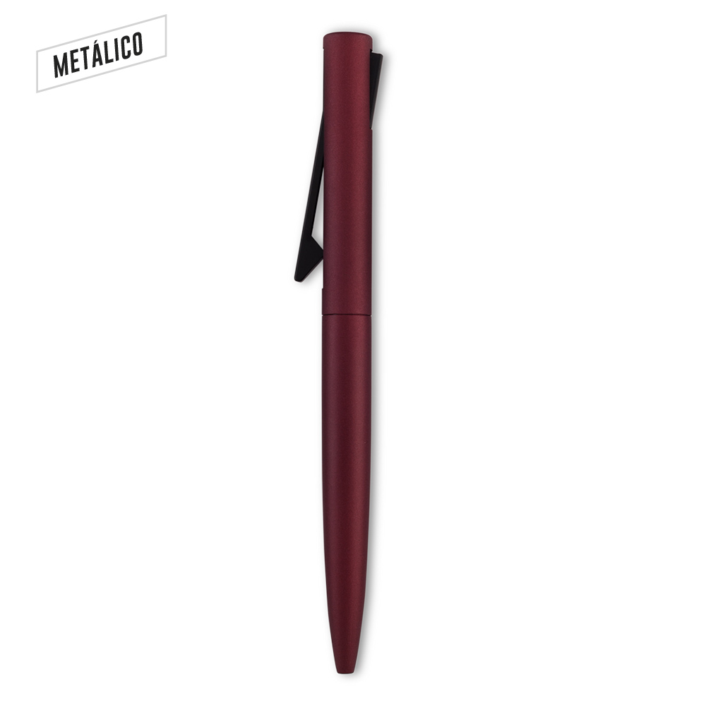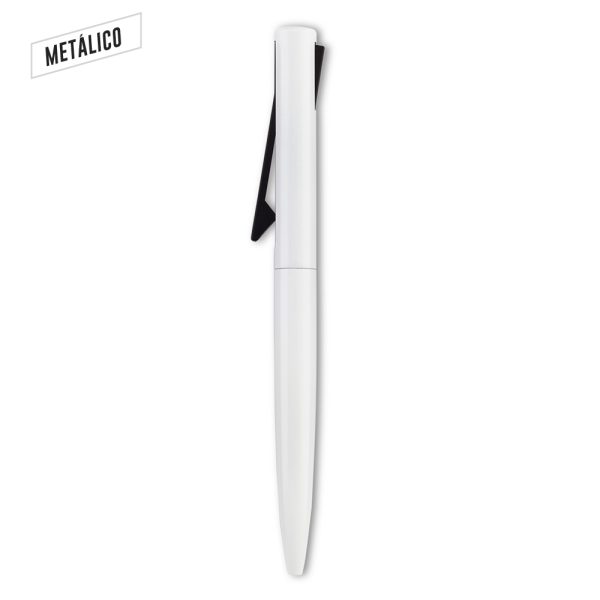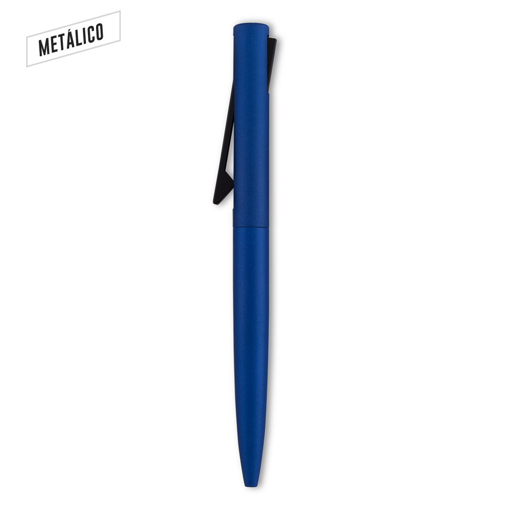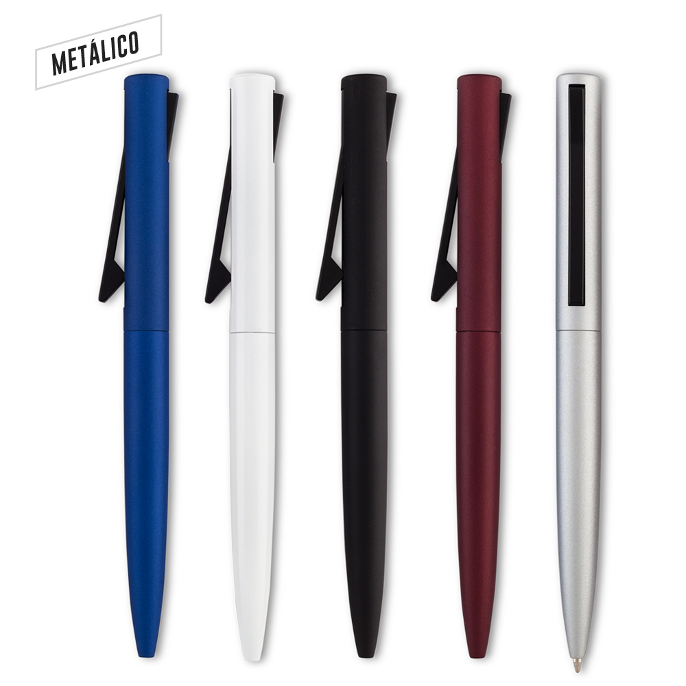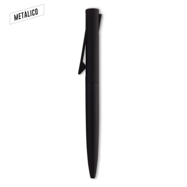 Bolígrafo metálico / plástico con obturador en el clip. Barril superior plástico, barril inferior metálico.