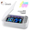 Esterilizador para móviles multifuncional. Luz UV ambos lados y frontal, esterilización 360°. Función de difusor de aroma incorporado (esencia no incluida). Funciona con dos gotas de esencia a base de aceite. Dimensiones de la cavidad interna: 180x100x22mm.