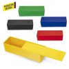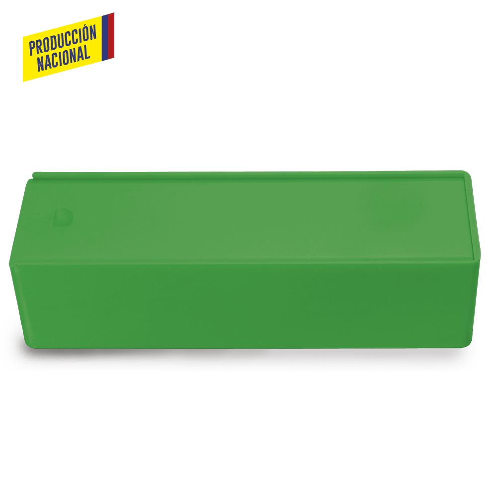 Plástico con tapa corrediza. Para múltiples usos.