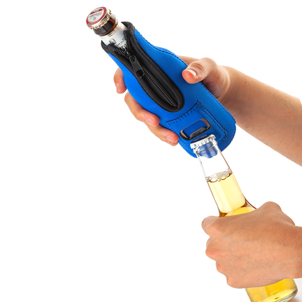 Funda portabotella en neopreno con destapador.