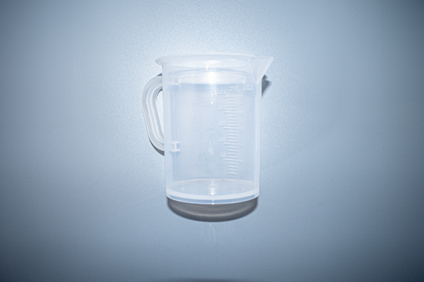 Jarra medidora con asa en plástico transparente. Capacidad 500 ml. Estampado 1 tinta.
