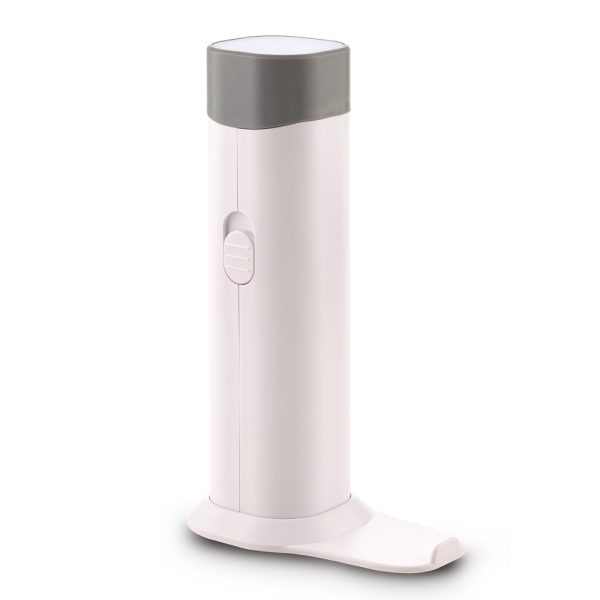 Lámpara LED que funciona como linterna de mano y con cuello plástico extensible y soporte que la convierte en lámpara de escritorio. Incluye pila recargable de 1.200mAh. Empaque caja individual.