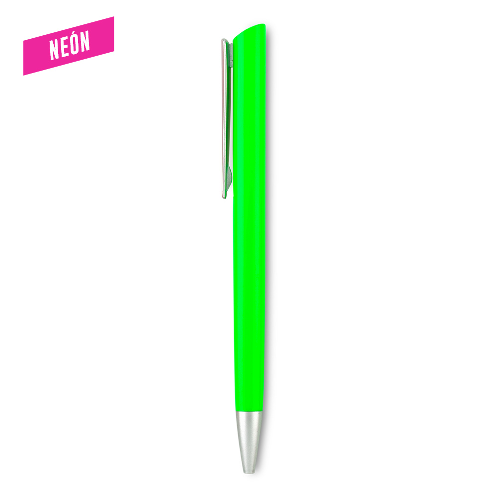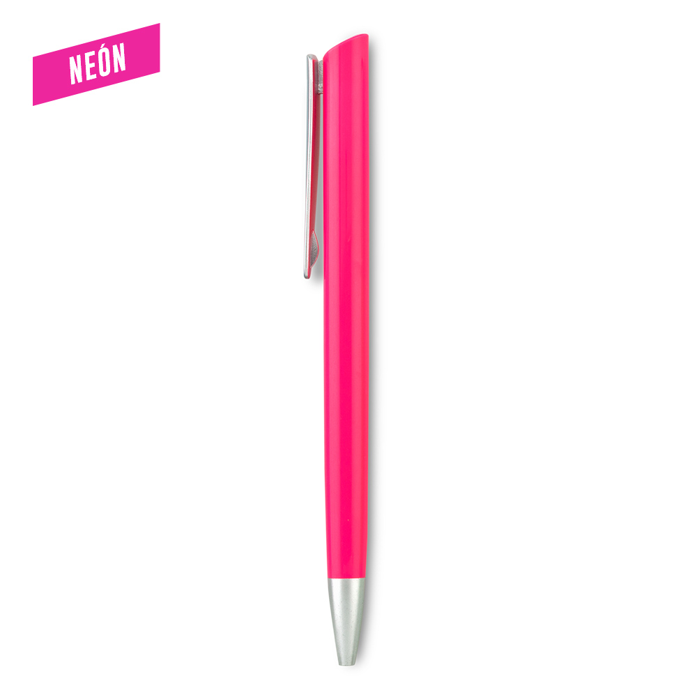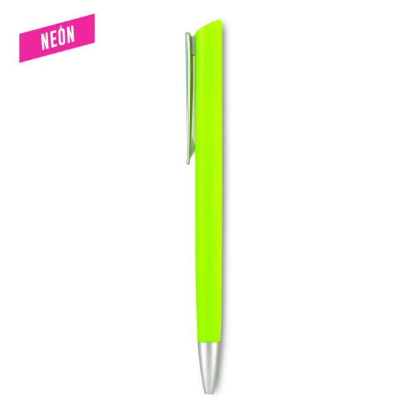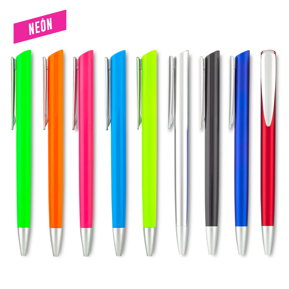 Bolígrafo plástico con acabado metalizado o neón. Mecanismo push.
