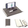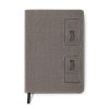 Libreta en políester, con dos orejas que funcionan como soporte para el celular. 112 hojas rayadas color crema. (No incluye bolígrafo).