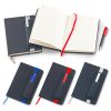 Cubierta en poliuretano (PU). Incluye bolígrafo plástico. 96 hojas de papel 80g con rayas.
