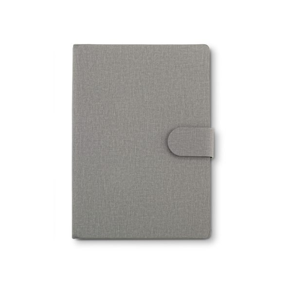 Libreta en poliuretano con cierre de imán. Inclúye block para anotar actividades del día a día de 80 hojas rayadas, 9 stickies de colores.