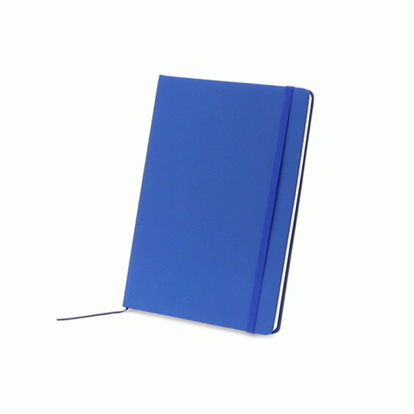 Libreta con cubierta en poliuretano con cierre elástico. Papel crema sin rayas. 100 hojas.