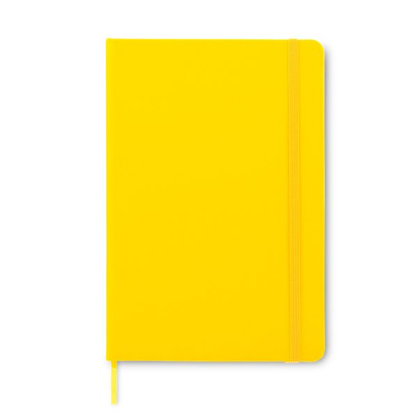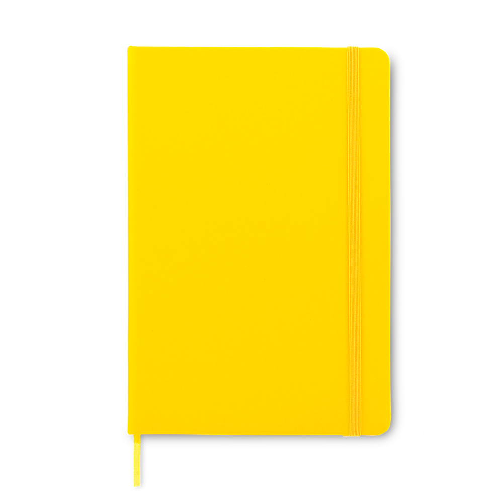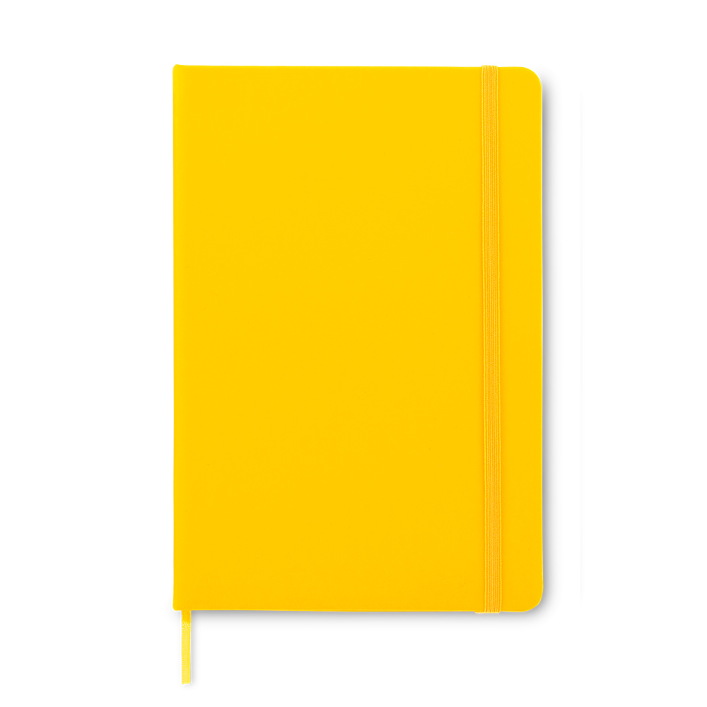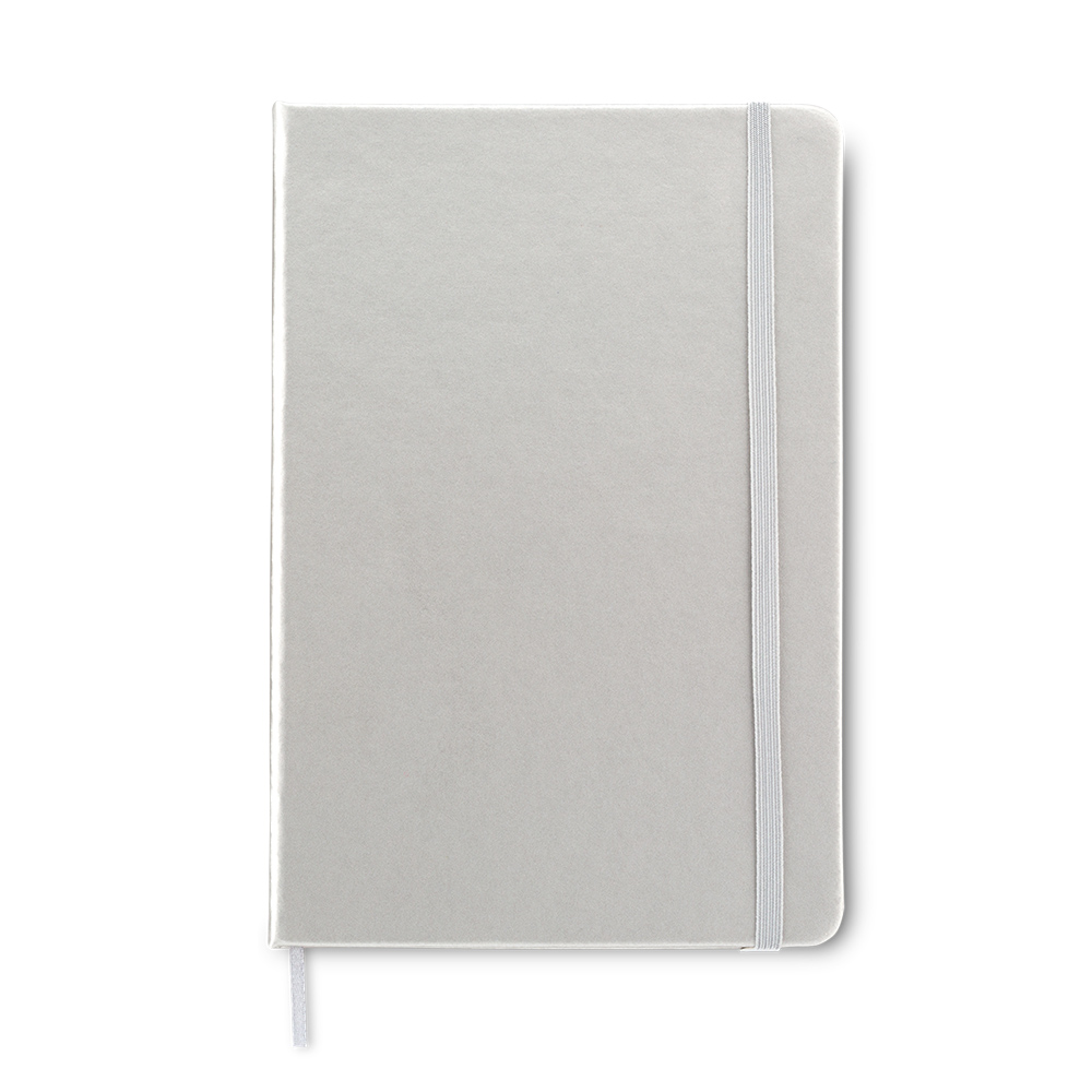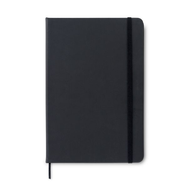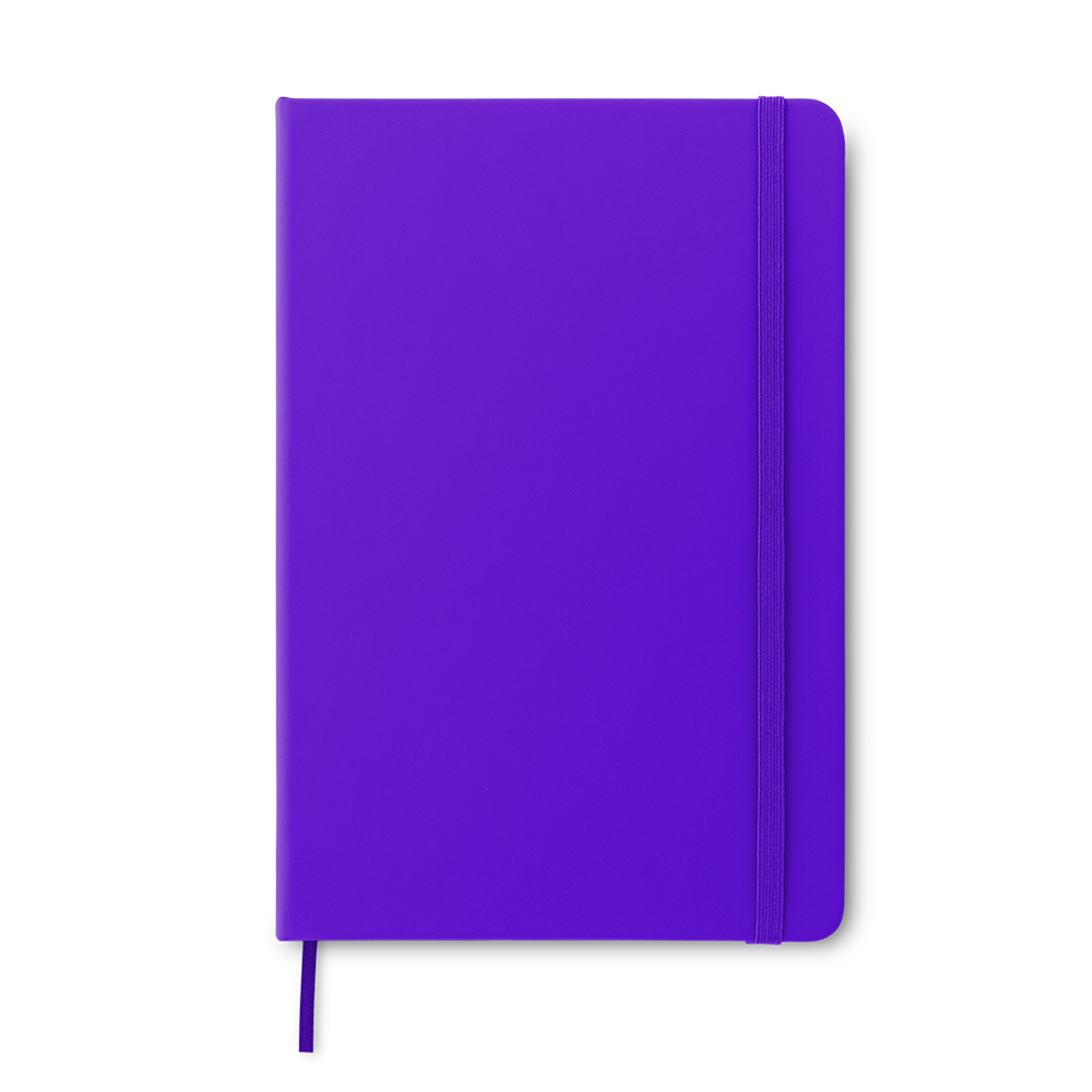 Libreta en poliuretano con cierre elástico. No incluye bolígrafo. 80 hojas.