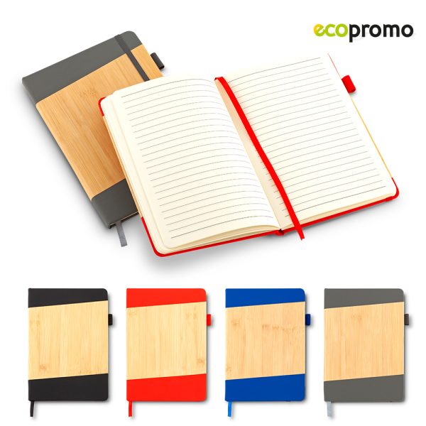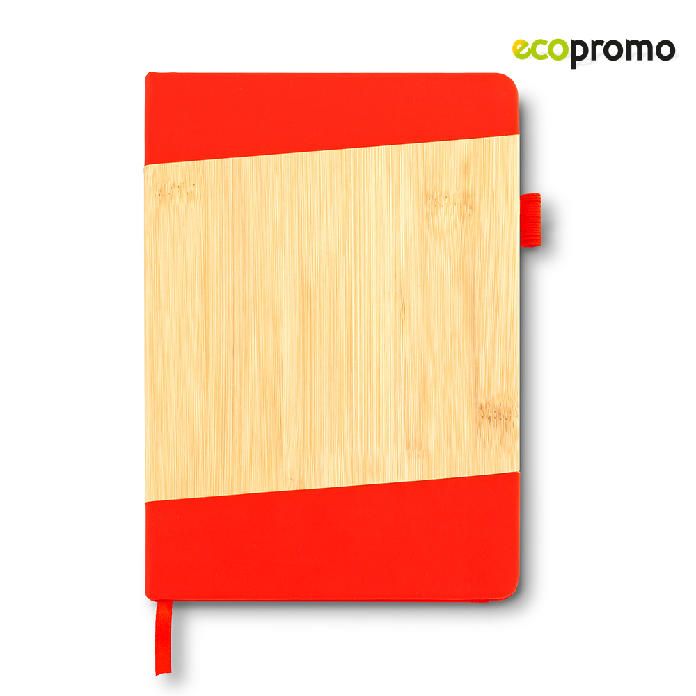 Libreta con carátula en bambú y PU. 80 hojas con rayas.