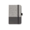 Mini libreta cubierta en tela y poliuretano con cierra elástico. 96 hojas rayadas. No incluye bolígrafo.