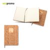 Libreta de 80 hojas de papel natural con rayas, cubierta en corcho con cierre elástico y placa en bambú.